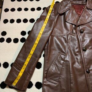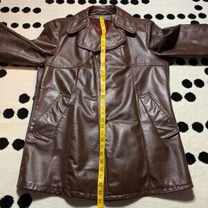 Vintage 70s Chocolate Brown Disco Leather Jacket Retro Mod Trench Coat
