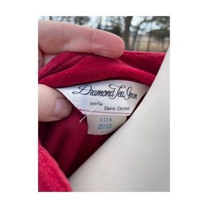 70s DIamond Tea Velvet Robe Burgundy Half-Zip Dressing Gown By Diane Deckel Sz M