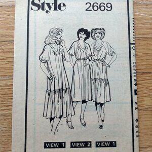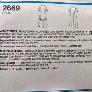 Suggested fabrics - Soft fabrics of cotton type, rayon, crepe, silk types, fine jersey and synthetics. View 2 also in wool/cotton blends and fine wool.