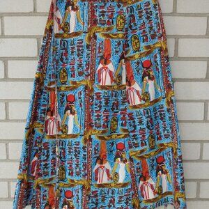 Vintage 70s Egyptian Wrap Skirt with Novelty Print