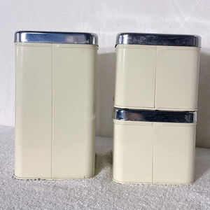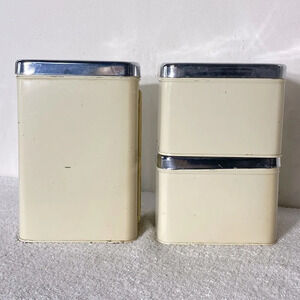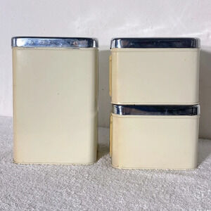 Vintage 70s Ekco Canada Limited Cream Beige Metal Canister Set Sugar Coffee Tea