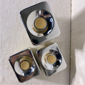 Measurements in pics. I have a matching bread box and a couple more canisters. If you’re interested in them let me know and I’ll add them to your bundle so you can take a look.