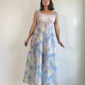 Vintage 70s Floral Maxi Babydoll Nightgown Size M