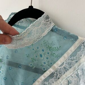 • Color: Soft blue with floral print and white lace
