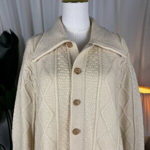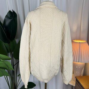 Vintage 70s Jantzen Cream Wool Knit Button-Up Cardigan Sweater Size Large