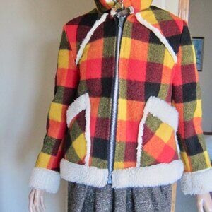 Vintage 70s LADY UTEX Retro Orange Plaid Wool Sherpa Bomber Jacket Canada