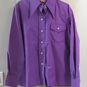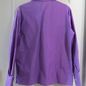 Vintage 70's Ladies SKYR by Scandia Trading Nylon Purple Button Down Shirt Sz LG