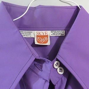 Vintage 70's Ladies SKYR by Scandia Trading Nylon Purple Button Down Shirt Sz LG. In like new condition. 100% Nylon.