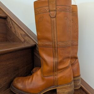 Vintage 70s Longhorn Stitched Campus Frye style leather western Boots Women’s 10 D (medium width)