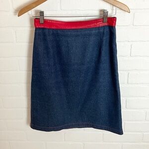 Pencil skirt with red leather belt pannel