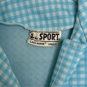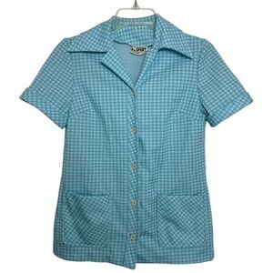 Vintage 70s Matching Two-Piece Pant Set Size Small Blue Gingham Checker Retro