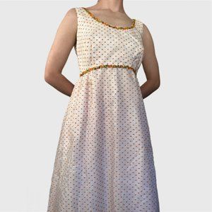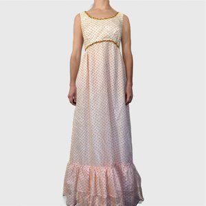Vintage 70s Maxi Dress, 1970s Orange Polka Dot Ruffle Prairie Dress