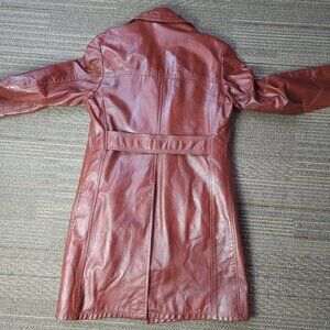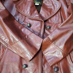 Vintage 70s Mens Sears Long Leather Red Coat Winter Lining (L-40)