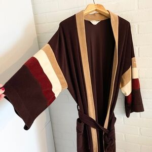 Vintage 70s Men’s (or unisex) Robe Velvet Mod Blokecore Brown Earthy tones OS