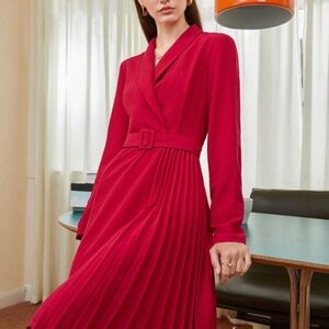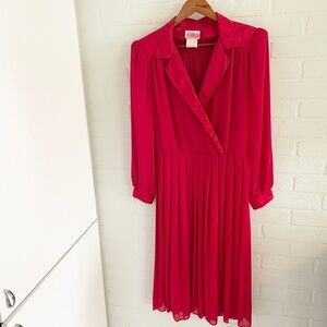 Vintage 70s Midi Dress Secretary Mad Men Elegance Pleated skirt Red Sheer 12
