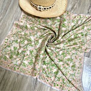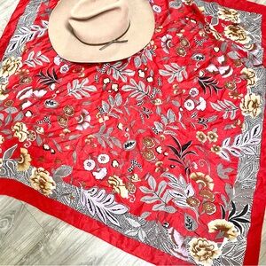 Vintage 70s NWT Red Yellow Floral Baroque Style Bandana Scarf
