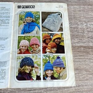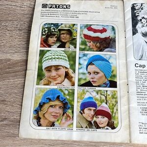 Vintage 70s Patons Beehive Pattern Book Knit Crochet 404 Caps Bags Scarves Hats