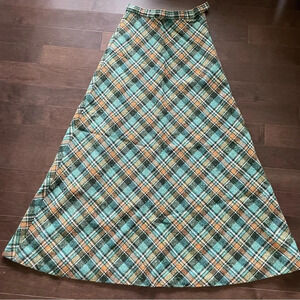Vintage 70s Plaid Wool Lined Maxi Skirt with Lace Women’s XS
