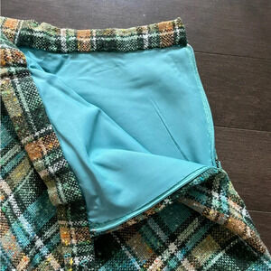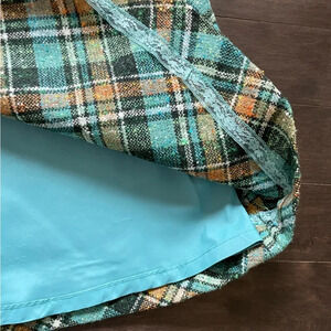 Wool, vintage, 70s, 60s, 50s, plaid, lined, flare, blue, orange, lace, warm, cozy, checkered, tartan, preppy, classic, cozy, natural, orange, blue, teal
