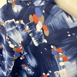 Vintage 70s Sears Sports Life Disco Hipster Men M 15.5 Polyester Shirt Blue