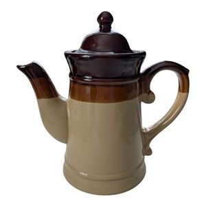 Vintage 70s Stoneware Tan Brown Glazed Tea Coffee Pot With Lid Chunky Farmhouse