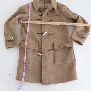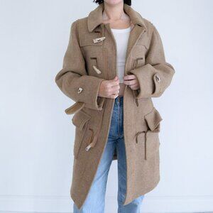 Vintage 70's Tan Zip Up 40% Wool Knee Length Duffle Coat L