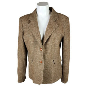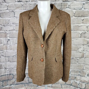 Vintage 70s Tweed Equestrian Preppy Academia Blazer Brown Cream Size 14