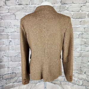 Vintage 70s Tweed Equestrian Preppy Academia Blazer Brown Cream Size 14