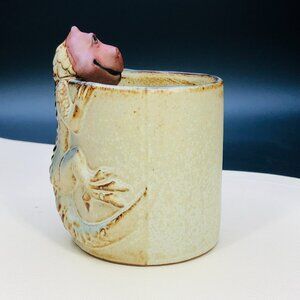 Vintage 70s UCTCI Anthropomorphic Lizard Mug, Japan Redware Pottery Coffee Cup