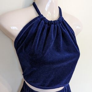 Vintage 70s Velour Top And Skirt Set Small