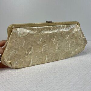 Vintage 70s Women's Victorian Gold Floral Clasp Clutch Wallet Purse Coin Pouch