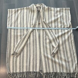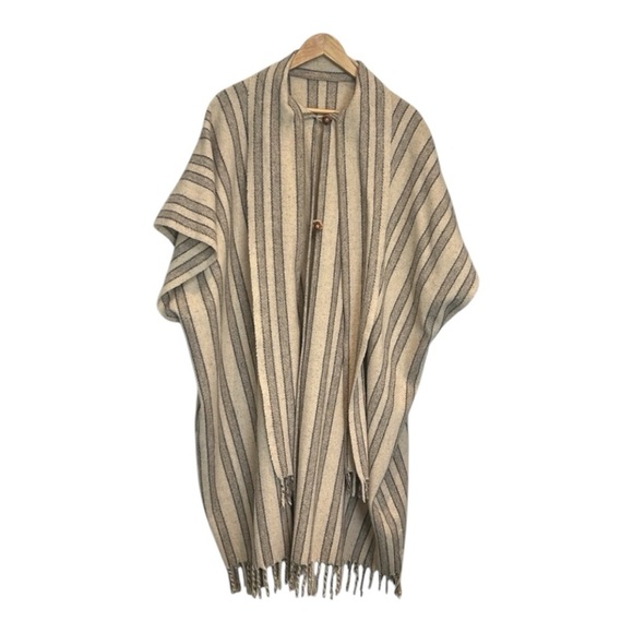 Vintage 70s Wool Blanket Cape Poncho Coat with Fringes One Size