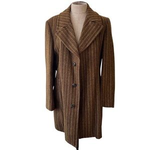 Vintage 70s Wool Overcoat Brown Stripe Quilt Lined 60s Rockabilly Boho Peacoat