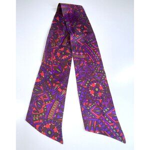 Fabulous vintage 70s head scarf. Skinny and long, groovy purple and hot pink abstract pattern, it's the perfect retro accessory!