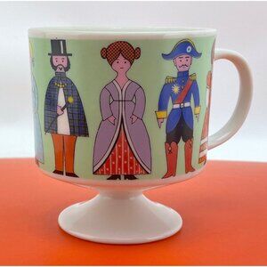 Adorable vintage mug. Typical Irish coffee style mug, footed. lovely print of people wearing vintage clothing.