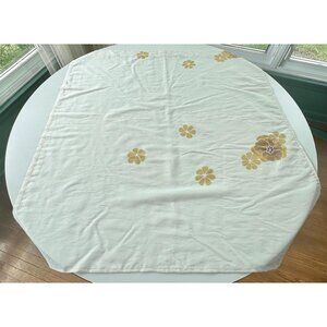 Vintage 70s cream curtains, large brown, tan daisy flowers, rod header, pair