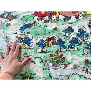 Vintage 70s curtain, Smurfs, comic, movie characters, pleated panel, price for 1