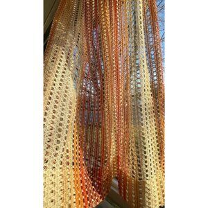 Vintage 70s curtain, beige brown rust ombre pattern, honeycomb mesh single panel