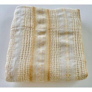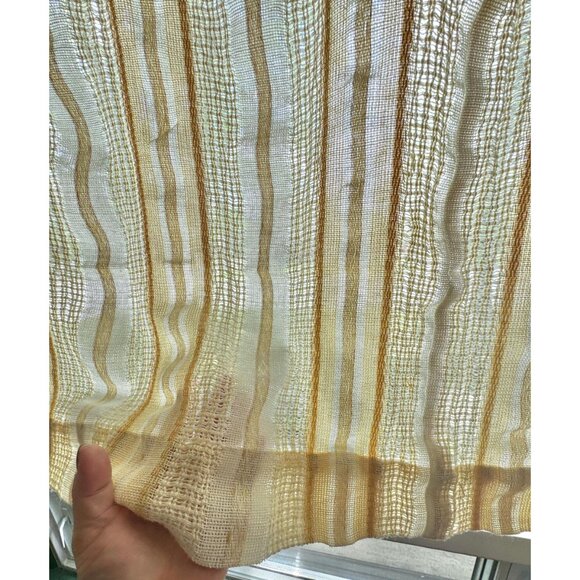Vintage 70s curtain, beige, tan, orange vertical stripes, rod header panel