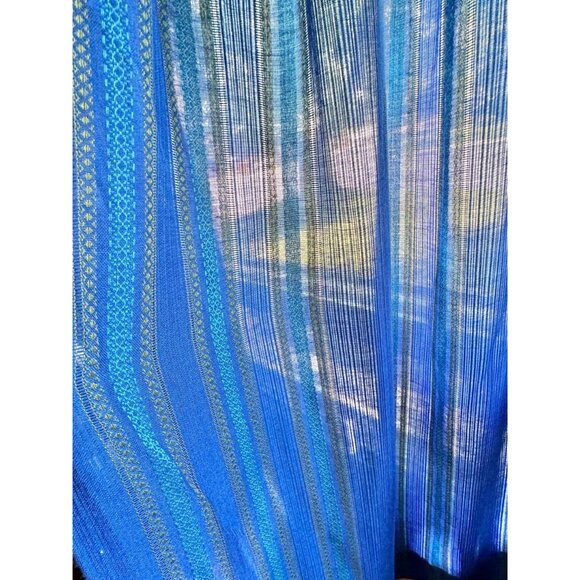 Vintage 70s curtain, blue and green stripes, pleated, price per panel