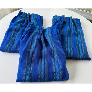 Vintage 70s curtain, blue and green stripes, pleated, price per panel