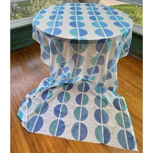 Vintage 70s curtain, blue oval geometric print, sheer, not hemmed, per panel