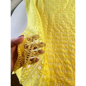 Vintage 70s curtain, bright yellow, net mesh, open weave single panel