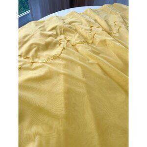 Vintage pleated curtain, single panel, only one is available. From the 70s, gorgeous and shiny sunny yellow. Stunning living room or dining room drapery, sheer with an embroidered arabesque at the bottom.
