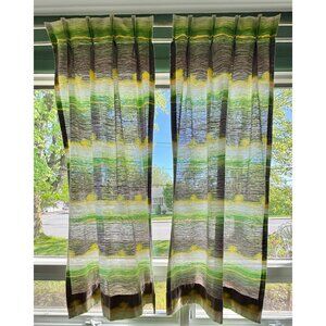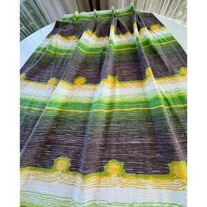 Vintage 70s curtain, green yellow, brown groovy stripes, pleated, per panel