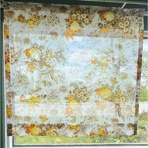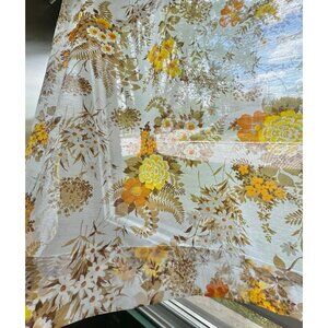 Vintage 70s curtain, large white, orange, yellow, brown flowers, rod header