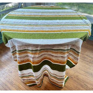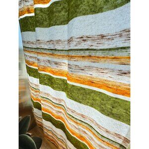 Vintage 70s curtain, orange, green, tan horizontal stripes, rod heading