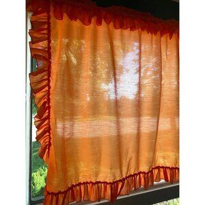 Vintage 70s curtain, pumpkin orange, sheer ruffled single panel