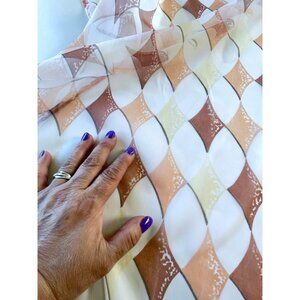 Vintage 70s curtain, sheer, orange brown white geometric pattern, single panel