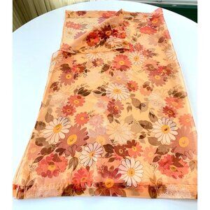 Vintage 70s curtain, sheer orange, purple, white daisy flowers, single panel